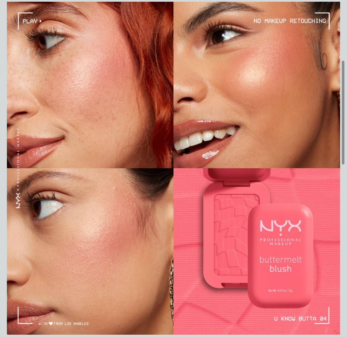 رژگونه پودری نیکس مدل Buttermelt، یک رژگونه پودری با فرمولی نرم و کرمی است. این رژگونه به راحتی ترکیب میشود و با رنگدانههای غنی خود، تا ۱۲ ساعت روی پوست باقی میماند و پخش یا محو نمیشود. غنی شده با کره شی باتر، کره انبه و کره بادام برای آبرسانی و احیای پوست شما.
