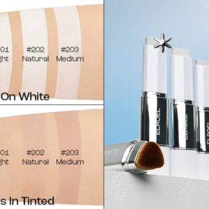 کرم پودر استیکی الروئل با فرمول هوشمند «تبدیل رنگ» طراحی شده است. هنگام تماس با پوست، رنگ سفید کرمی تبدیل به تناژی می‌شود که با رنگ روشن پوست شما هماهنگ است.